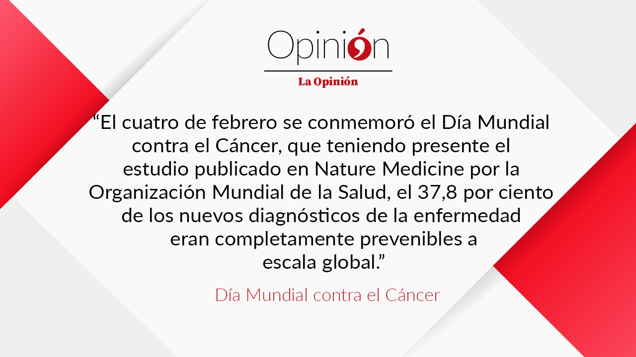 El cuatro de febrero se conmemoró el Día Mundial contra el Cáncer, que teniendo presente el estudio publicado en Nature Medicine por la Organización Mundial de la Salud, el 37,8 por ciento de los nuevos diagnósticos de la enfermedad eran completamente prevenibles a escala global.