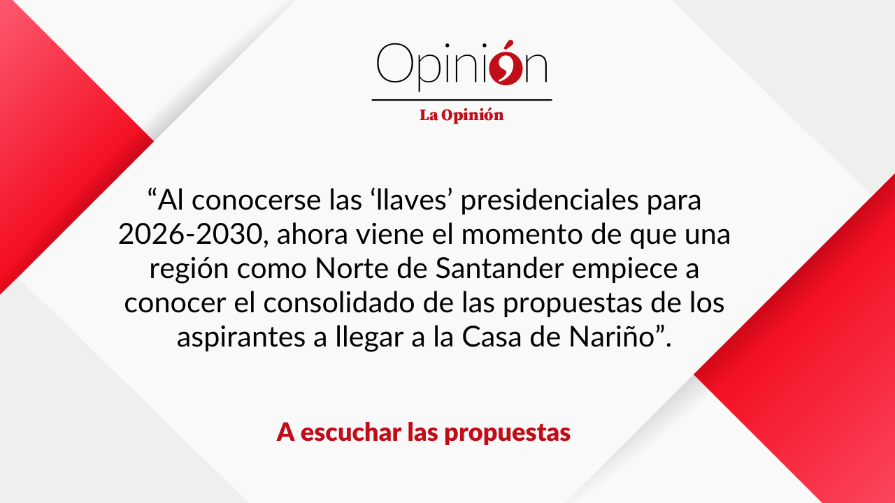 Al conocerse las ‘llaves’ presidenciales para 2026-2030, ahora viene el momento de que una región como Norte de Santander empiece a conocer el consolidado de las propuestas de los aspirantes a llegar a la Casa de Nariño.