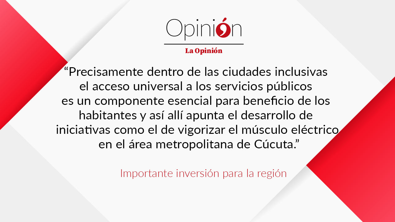 Precisamente dentro de las ciudades inclusivas el acceso universal a los servicios públicos es un componente esencial para beneficio de los habitantes y así allí apunta el desarrollo de iniciativas como el de vigorizar el músculo eléctrico en el área metropolitana de Cúcuta.