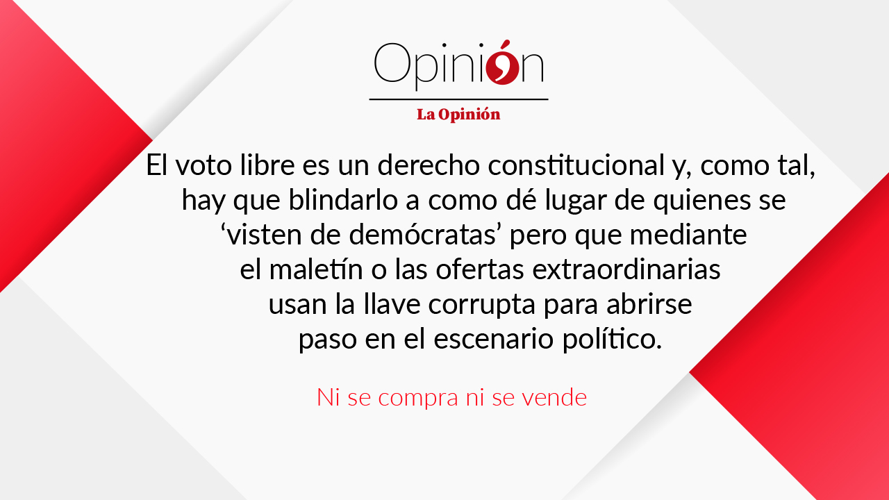 El voto libre es un derecho constitucional y, como tal, hay que blindarlo a como dé lugar de quienes se ‘visten de demócratas’ pero que mediante el maletín o las ofertas extraordinarias usan la llave corrupta para abrirse paso en el escenario político.