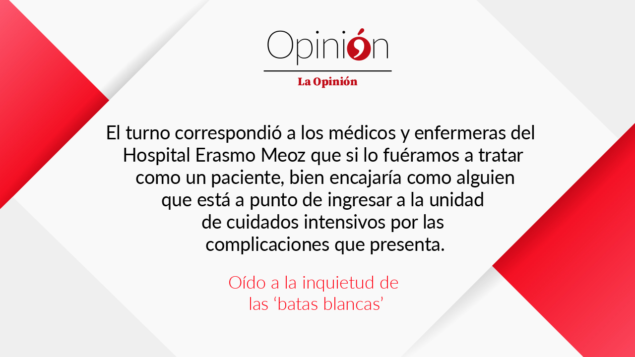 El turno correspondió a los médicos y enfermeras del Hospital Erasmo Meoz que si lo fuéramos a tratar como un paciente, bien encajaría como alguien que está a punto de ingresar a la unidad de cuidados intensivos por las complicaciones que presenta.