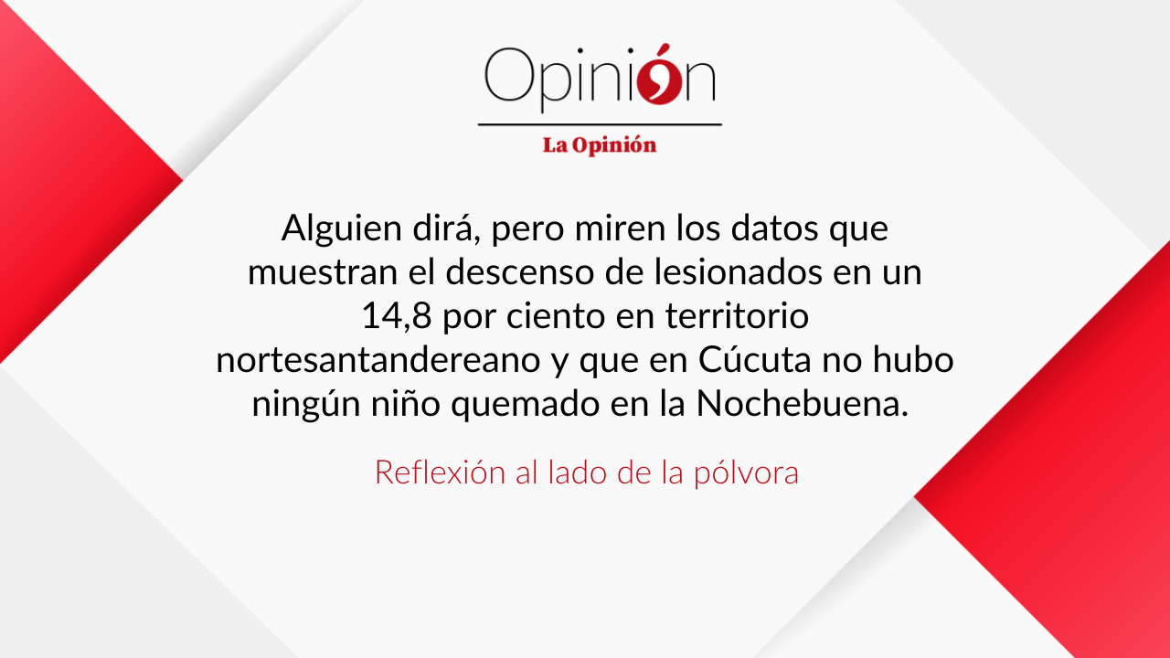 Colombia y Norte de Santander no pueden seguir asistiendo al triste espectáculo de la Navidad y el Año Nuevo con una pólvora descontrolada dejando lesionados a niños y adultos.
