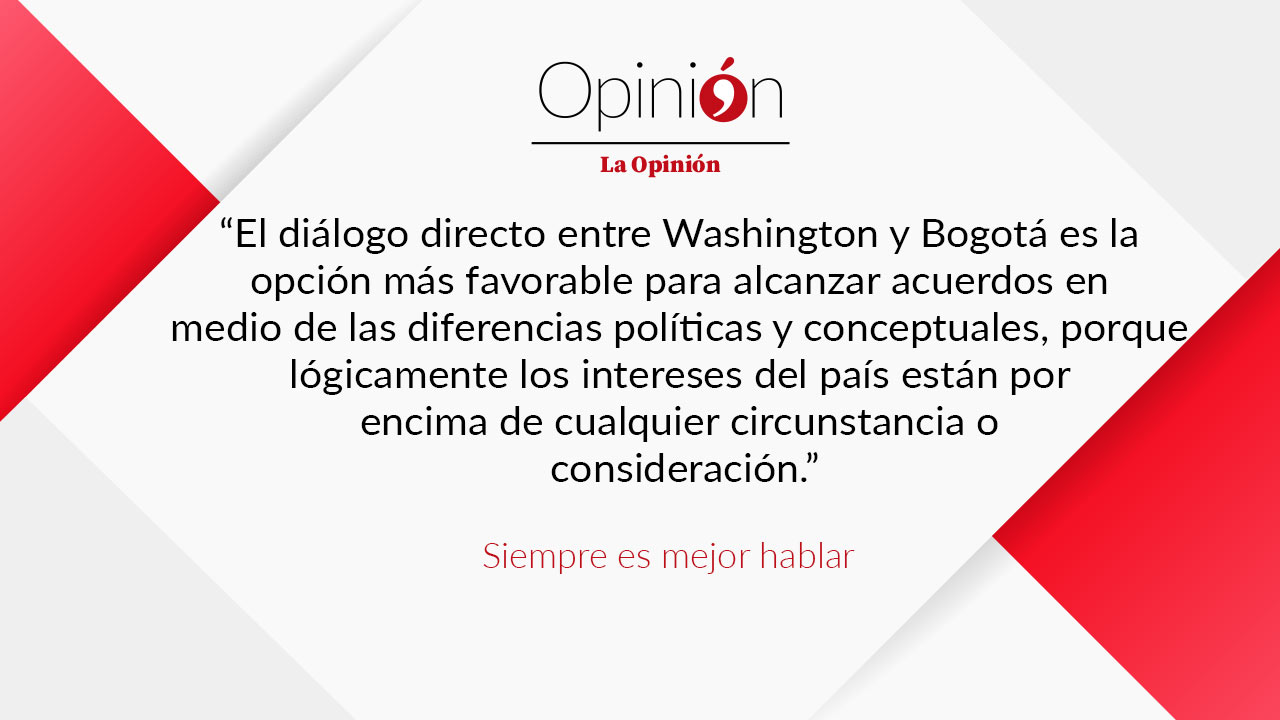 El diálogo directo entre Washington y Bogotá es la opción más favorable para alcanzar acuerdos en medio de las diferencias políticas y conceptuales, porque lógicamente los intereses del país están por encima de cualquier circunstancia o consideración.