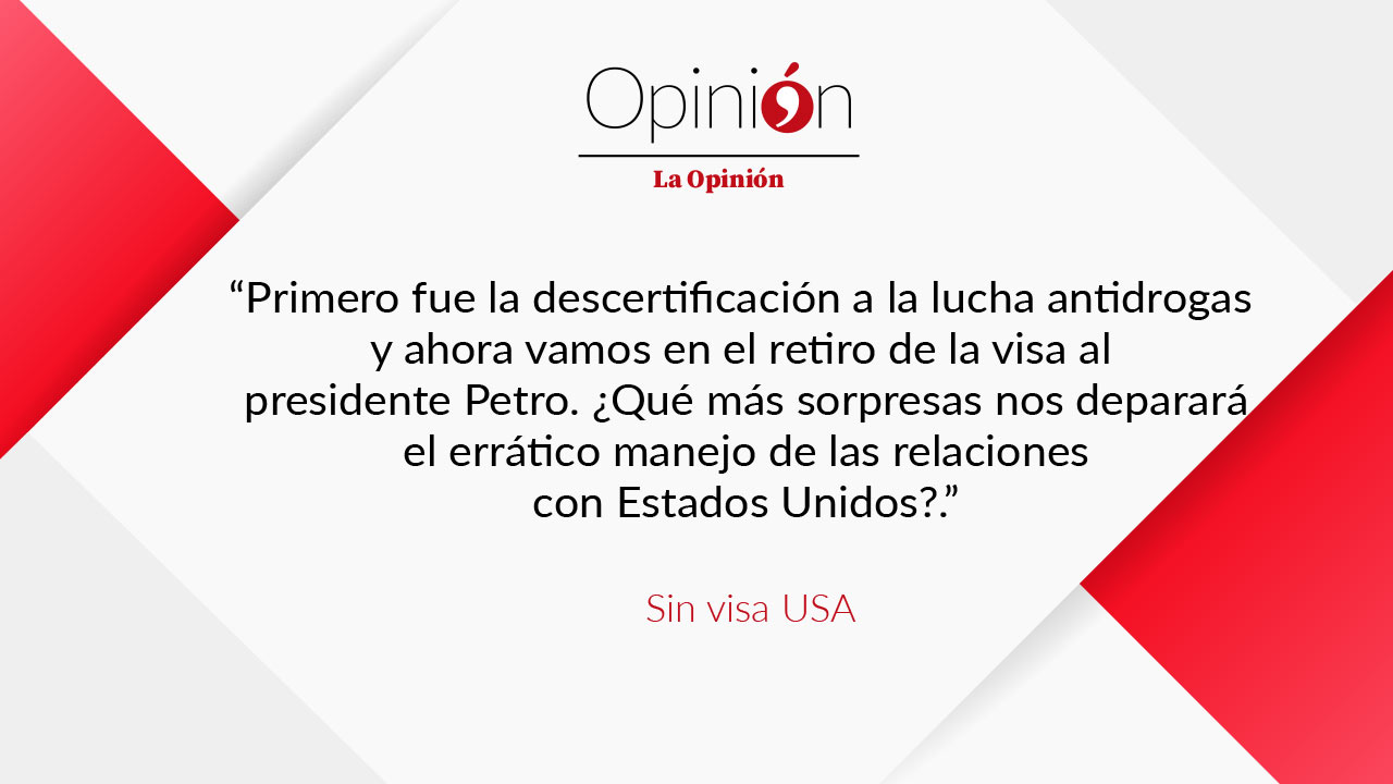 Otra de las lecturas al asunto del presidente sin visa, es que Petro ha decidido trasladar su lenguaje de confrontación y de polarización del ámbito nacional al internacional, con frases tan delicadas por ser dichas por el representante de nuestro país, como aquella de “por eso desde aquí, desde Nueva York les pido a todos los soldados del Ejército de EE. UU. que desobedezcan la orden de (Donald) Trump...”.