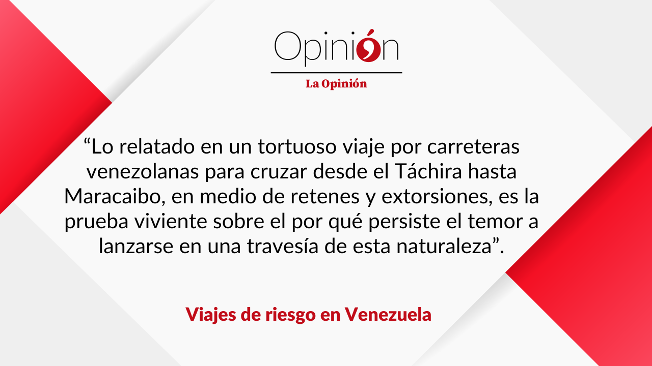 Lo relatado en un tortuoso viaje por carreteras venezolanas para cruzar desde el Táchira hasta Maracaibo, en medio de retenes y extorsiones, es la prueba viviente sobre el por qué persiste el temor a lanzarse en una travesía de esta naturaleza, por los riesgos que se corren.