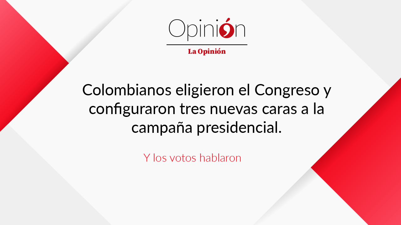La ciudadanía, haciendo uso de su derecho constitucional del voto libre, definió el 8 de marzo en las urnas una parte importante del futuro de Colombia con la confirmación del Congreso de la República y la escogencia de tres candidaturas presidenciales mediante consulta: Paloma Valencia, Claudia López y Roy Barreras.