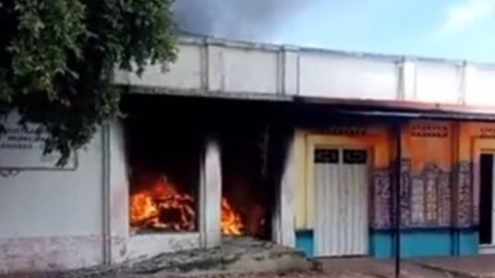 En las imágenes difundidas por redes sociales, se observa como la asonada realizada por los habitantes de la zona destruyen el lugar y provocan el incendio mientras huyen del lugar. “Delincuentes arrojaron gasolina a la registraduría, que estaba siendo protegida por la policía y luego le prendieron fuego”, dijo el ministro del Interior, Luis Fernando Velasco.