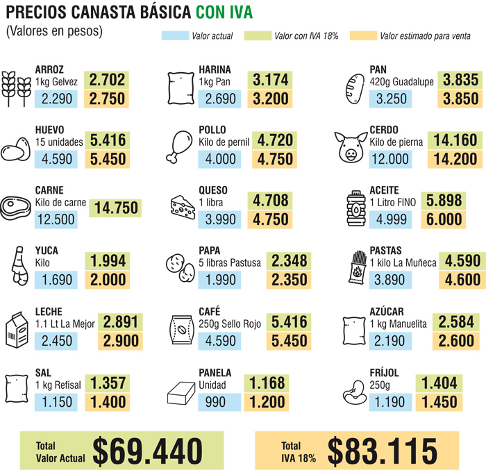 De aprobarse, el colombiano de a pie no solo pagará más por el nuevo impuesto, de 18% para el 2019, sino que también deberán ajustar su presupuesto por las alzas que trae cada año los precios de los alimentos, productos y servicios por cuenta de la inflación.