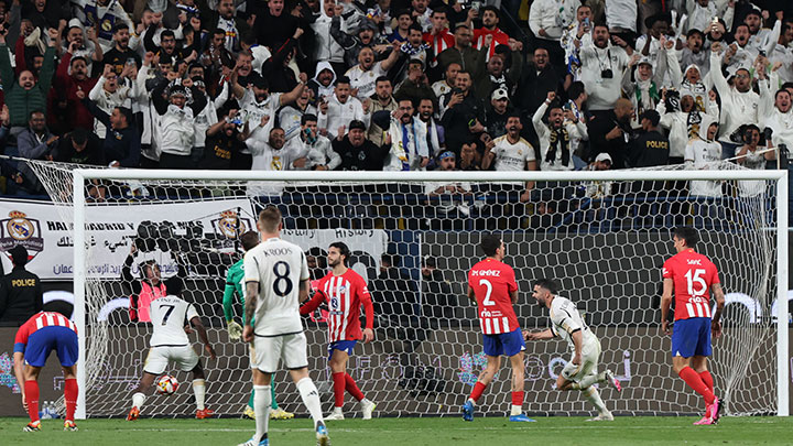 Los atléticos se adelantaron pronto en el estadio Al-Awwal de Riad, en cuyas abarrotadas gradas predominaba el blanco de apoyo a los merengues.