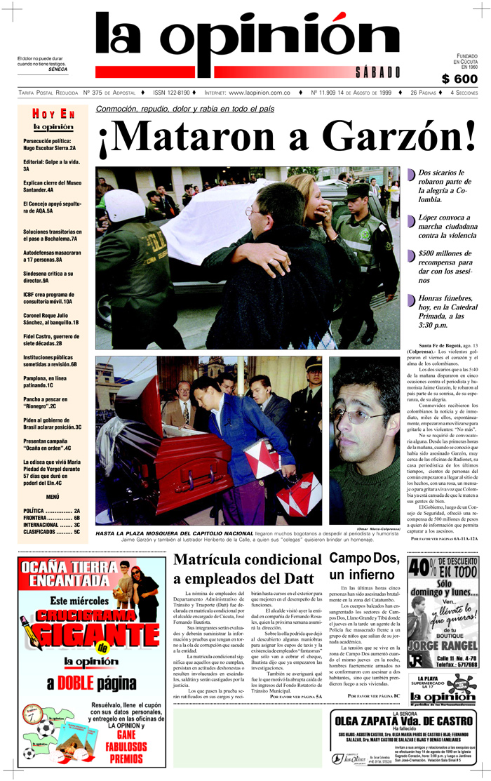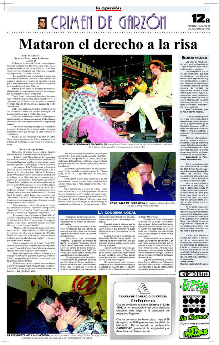 Garzón se había convertido en uno de los referentes de la opinión pública nacional a través de sus programas humorísticos con tinte político. Su muerte conmocionó a Colombia entera y sigue dejando sensación de impunidad por la demora de los resultados en las investigaciones.