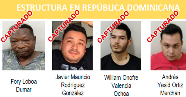 Estando en ese país, RM se habría asociado con el colombiano William Onofre Valencia Ochoa, de 19 años, y los venezolanos Andrés Yesid Ortiz Merchán y Fory Loboa Dumar, de 27 y 65 años, respectivamente, a quienes el pasado 23 de febrero capturaron e impusieron tres meses de prisión preventiva en la cárcel La Victoria, de República Dominicana.