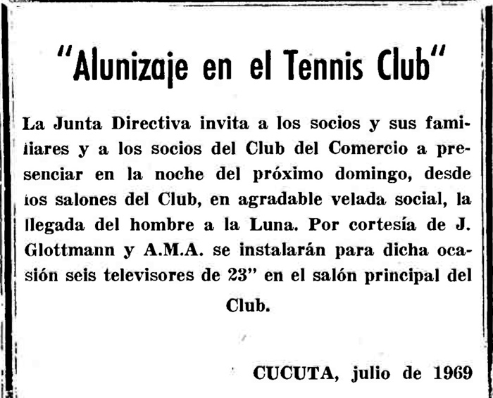 Mientras que en Estados Unidos, Canadá, Rusia, o cualquier otra país, los espectadores, en sus casas, se sentaron frente a sus televisores; en Cúcuta se acomodaron pantallas gigantes, que en ese entonces eran de 23 pulgadas a blanco y negro, en las esquinas más concurridas de la ciudad.