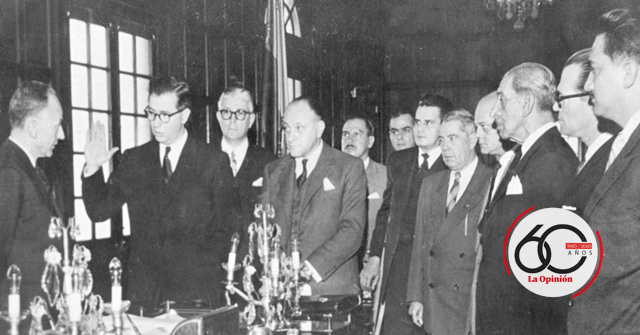 Posesión de Virgilio Barco como Ministro de Obras Públicas (1958), ante Alberto Lleras Camargo. Foto archivo La Opinión.