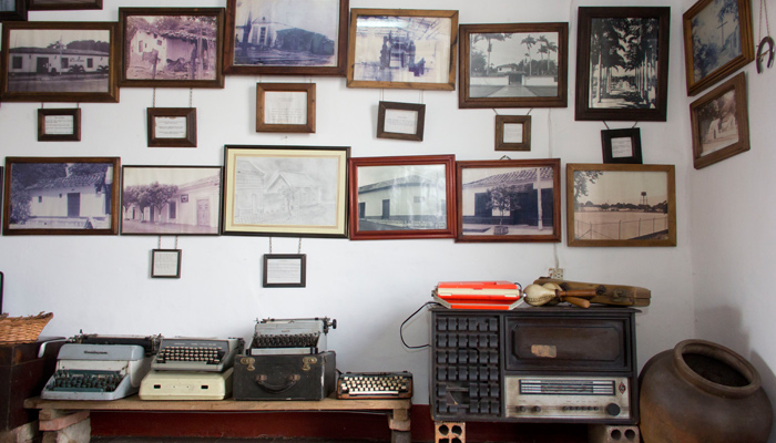 Además de las fotografías que están en las encaladas paredes de más de un siglo, Gerardo exhibe objetos usados por los primeros habitantes del casco urbano, levantado en la aprte alta de Villa Antigua después del terremoto,.