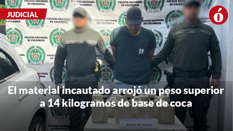 En un operativo desarrollado por uniformados de la estación de Policía La Esperanza, en Norte de Santander, fue capturado en flagrancia Michael Steven Hurtado Pabón, señalado del delito de tráfico, fabricación o porte de estupefacientes, luego de que le encontraran más de 14 kilos de base de coca ocultos dentro de un carro particular.