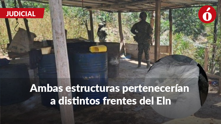 Mientras que en Cumana, corregimiento Palmarito, en la zona rural de Cúcuta, hallaron una estructura del frente Juan Fernando Porras Martínez, también del Eln, utilizado para el procesamiento de la pasta base de coca.