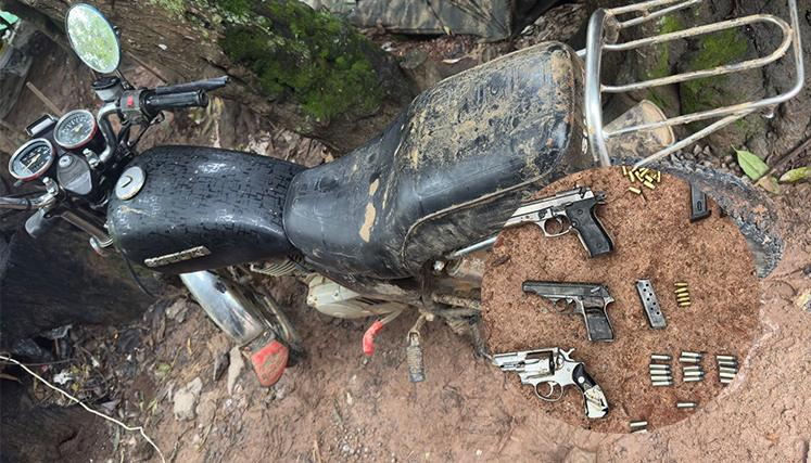 Tras el enfrentamiento, los responsables huyeron del lugar. En el sitio fueron halladas tres armas cortas, cartuchos de distintos calibres y dos motocicletas.