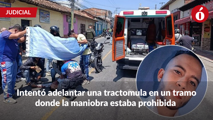 Según el reporte de las autoridades entregado a este medio, el joven de 26 años, quien laboraba como domiciliario, intentó adelantar una tractomula en un tramo donde la maniobra estaba prohibida y fue sorprendido por un camión tipo Turbo que se desplazaba en sentido contrario.