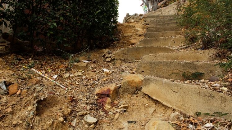 Su cuerpo cayó a un costado de las escaleras, tendido boca arriba y visible para los residentes de la parte alta del barrio, quienes hicieron el hallazgo minutos después. Sin poder reconocerlo, notaron que se trataba de un joven de aproximadamente 25 años, que vestía una camiseta celeste y una pantaloneta roja. Toda su ropa quedó ensangrentada, al igual que su rostro.