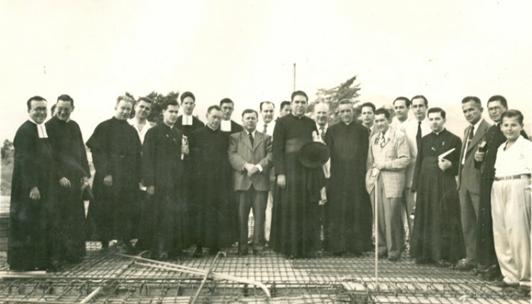 La fotografía de este sábado constituye un recuerdo de 1951, probablemente durante el acto de bendición de la obra que se iniciaba de la construcción de la Iglesia de María Auxiliadora (Colegio Salesiano).