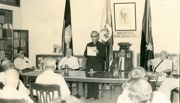 Esta fotografía de hoy data de mediados o finales de la década del 80 y fue tomada durante una conferencia dictada ante los miembros de la Academia de Historia de Norte de Santander por el Presbítero Manuel Briceño Jáuregui SJ, quien por esa época presidía la Academia Colombiana de la Lengua.