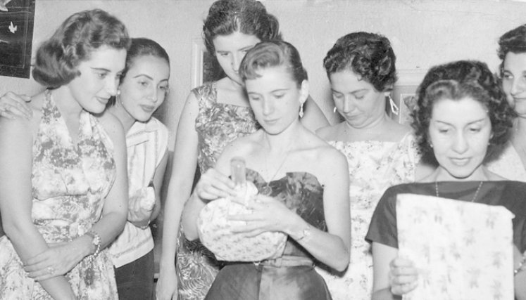 La fotografía de hoy fue tomada en 1958 y corresponde al Baby Shower de Teresa Espinel de Morelli en la casa de la familia Cabrera. La acompañaron un grupo de amigas, de izquierda a derecha: Margarita de Cabrera, Margarita de Vergel, Blanca Cárdenas de Gandica, Isbelia Ramírez de Morelli y Yolanda de Patitucci.
