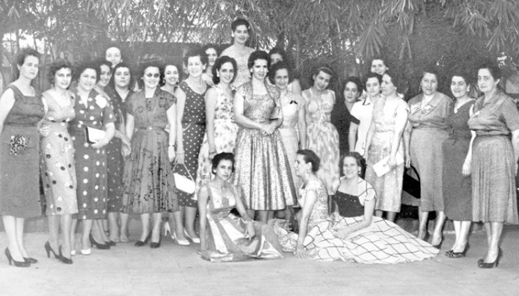 La fotografía de esta reunión social data de comienzos del 60 y parece ser en uno de los clubes sociales de la ciudad. De izquierda a derecha de pie, recordamos entre otras a Graciela Soto de Barajas, Blanca Viccini de Colmenares, Luisa Conde de Mendoza, Alicia Colmenares de Silva, Rosa Melguizo de Luzardo, Nelly Gutiérrez de Caicedo, Helena Valencia de Febres, Dora Jaramillo de Mora, Raquel Senior de Botero, Ana LaRotta de Delgado, Julieta Flórez de Faillace, Carola de Faillace, Nena Martínez de Rivera, María Elena Duarte de Soto, Elvira de Landínez, Yolanda Corinaldi de Vásquez, Tina de Cote, Elvira de Casas y Elvira Luzardo de González. Sentadas en el piso Florelia Cárdenas de Sandoval, Mercedes Rodríguez de Suárez y Graciela de Sandoval.