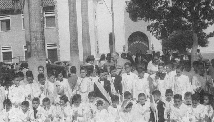La misa fue precedida por una procesión que salió de los claustros del colegio que en ese entonces quedaba en la calle 13 entre avenidas quinta y sexta y bajaba por toda la avenida tercera hasta el Parque Colón, encabezada por 60 niños.