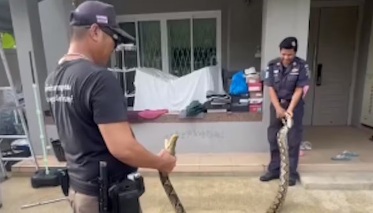 Pese a que es un hecho insólito, en Tailandia es común que durante la temporada de lluvias ocurran encuentros entre pitones y humanos. Las serpientes irrumpen en las casas en busca de alimento o refugio.