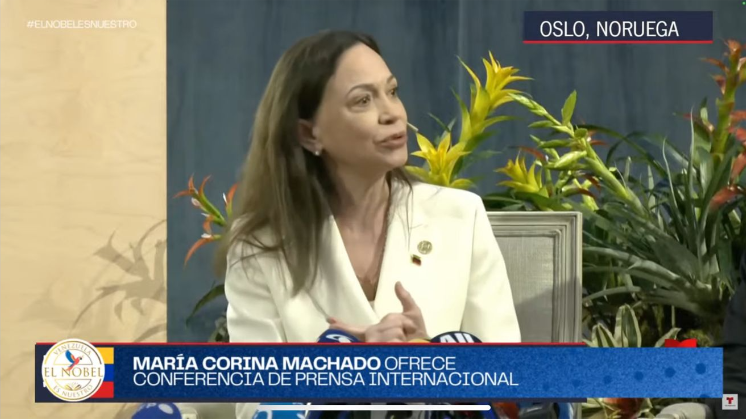 Machado reiteró que su visión es convertir a Venezuela “en un país de energía, tecnología y corazón para las Américas”, y agradeció el reconocimiento del Comité del Premio Nobel al pueblo venezolano, “yo solamente soy una venezolana de millones que creen en la democracia”, expresó.