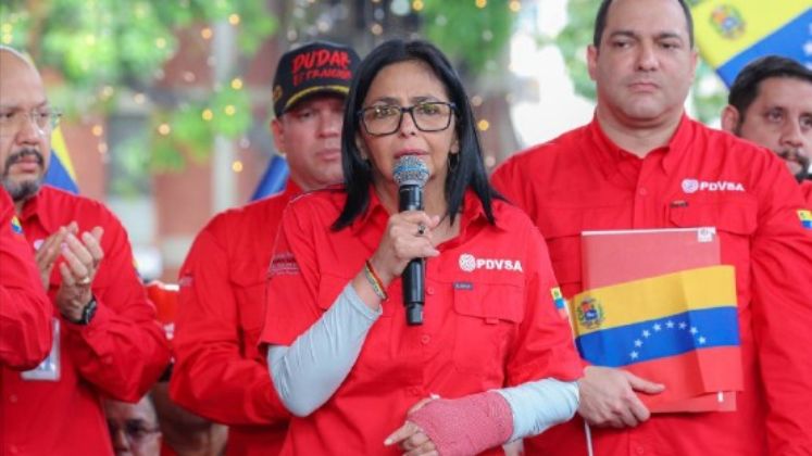«Ni la amenaza, ni la extorsión, ni el robo, ni el expolio, ni el saqueo es el camino (…). Venezuela no le debe nada a los Estados Unidos», manifestó la también ministra de Hidrocarburos, rodeada de trabajadores de la industria petrolera, entre ellos de la estatal Petróleos de Venezuela (PDVSA).