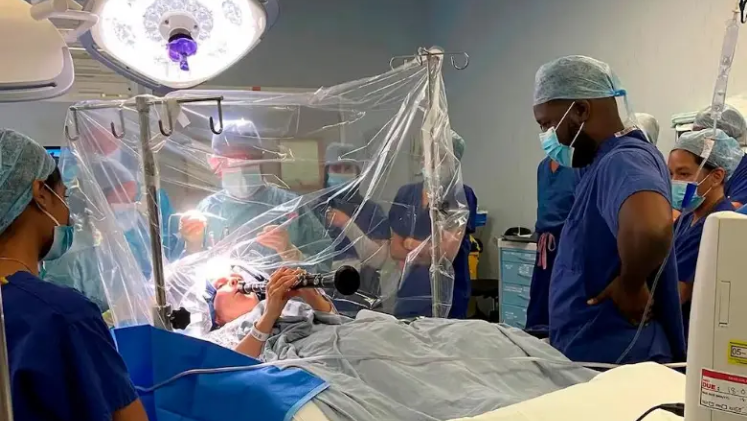 La escena fue cuidadosamente planificada: el neurocirujano Keyoumars Ashkan y su equipo le aplicaron anestesia local para adormecer el cuero cabelludo y el cráneo —el cerebro no tiene receptores del dolor—, de modo que pudiera permanecer consciente durante la cirugía. Mientras colocaban los electrodos en zonas profundas de su cerebro, Denise sostenía su clarinete y probaba las notas. Así podían observar, en tiempo real, los efectos del procedimiento sobre su movilidad.