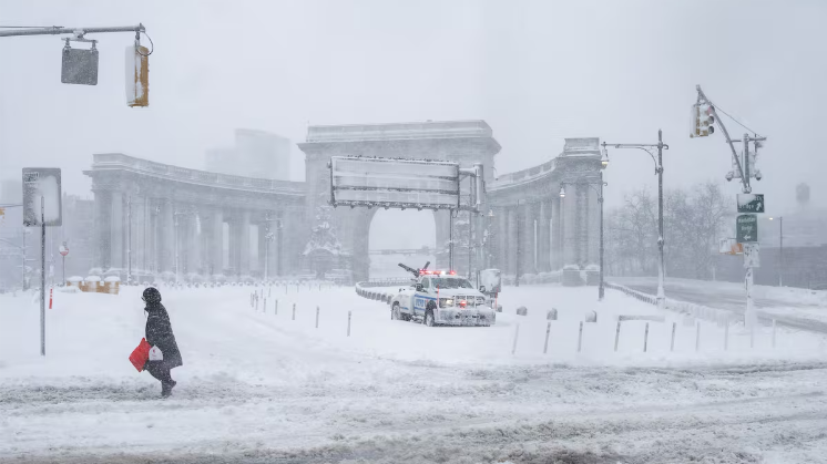 La medida dejó imágenes inusuales en espacios emblemáticos como Times Square, prácticamente vacío bajo la nieve. Las calles desiertas reflejan la magnitud del temporal y el acatamiento de las restricciones.
