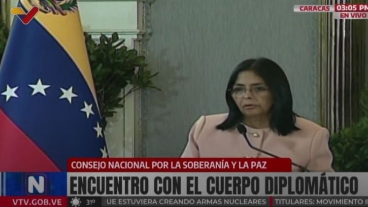 Delcy Rodríguez se quejó ante el cuerpo diplomático de que los venezolanos han estado sometidos las últimas semanas a una «guerra psicológica» sin precedentes, en alusión a las acciones militares estadounidenses en aguas internacionales del mar Caribe, con la presencia de «buques de guerra con misiles». También sostuvo que son momentos de «unidad nacional».