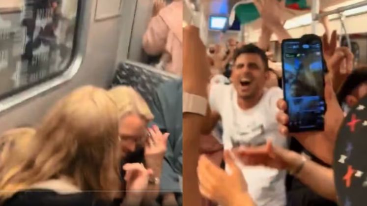 En un vagón del metro de la ciudad de Berlín, varias mujeres alemanas fueron grabadas llorando y visiblemente asustadas al quedar rodeadas por un grupo de inmigrantes islamistas que portaban una bandera palestina.