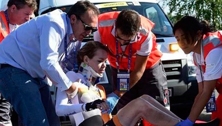 En un principio, las imágenes de televisión mostraron a la deportista de 33 años inmóvil tras perder el control de su bicicleta cuando bajaba a toda velocidad el peligroso descenso que ya le costó la carrera el sábado al italiano Vincenzo Nibali y al colombiano Sergio Luis Henao.