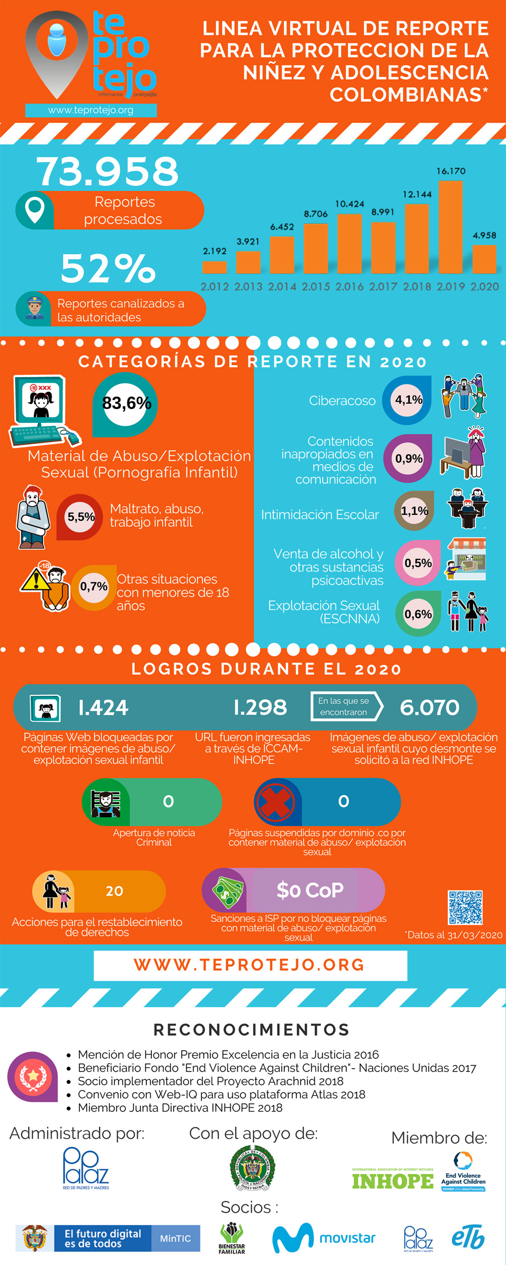 En el lapso del 17 al 24 de abril se procesaron 586 reportes a través de la plataforma virtual Te Protejo de Red Papaz. La mayoría de las denuncias recibidas en 2020, el 83%, es sobre páginas con imágenes de contenido sexual con menores de 13 años o de abuso sexual con menores de 18.