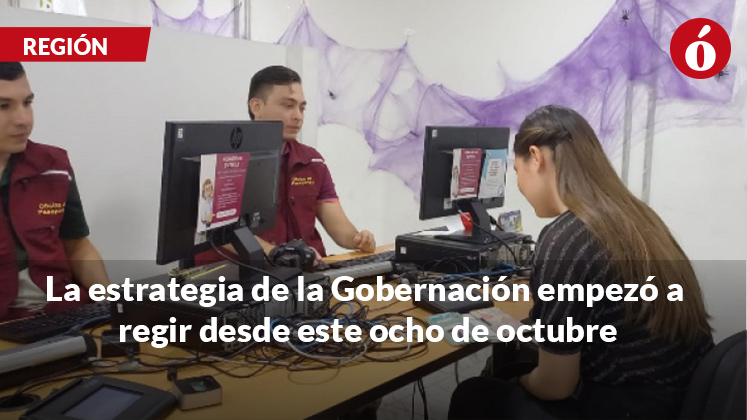Por esta razón, Castellanos explicó que la estrategia de la Gobernación, que empezó a regir desde este ocho de octubre, consiste en la habilitación de más personal para que se encargue de tramitar la cita de las personas que lo requieran directamente en la Oficina de Pasaportes, eliminando así los cobros ilegales que se vienen haciendo por el servicio.