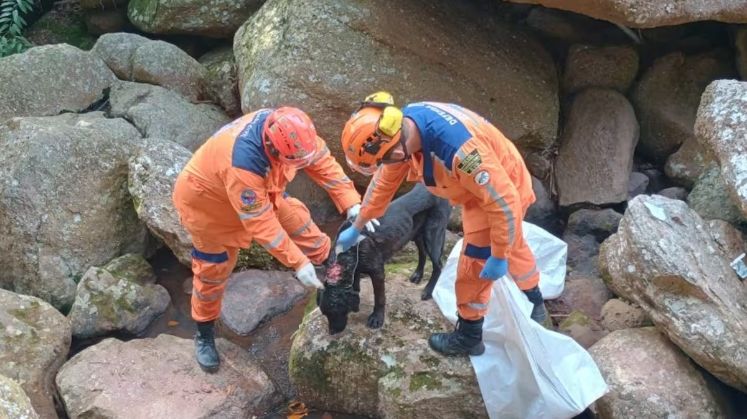 Un operativo de la Defensa Civil permitió el rescate de un perro criollo que llevaba varios días atrapado dentro de una cueva en la quebrada del barrio Nueva Colombia, en Piedecuesta.