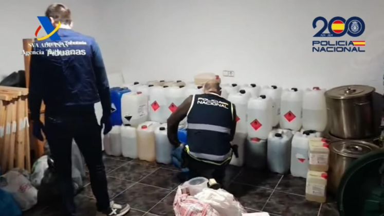 El laboratorio que fue desmantelado estaba en una finca en la provincia de Alicante, donde se intervinieron más de 1.000 kilos de elementos para el tratamiento de la droga, entre soda caustica, amoniaco, ácido sulfúrico y ácido nítrico, todos los materiales necesarios para la elaboración de cocaína. Así como utensilios como ollas de acero inoxidable y bidones de plástico de grandes dimensiones, papel tamizador y balanzas, junto a 10 kilos de esta droga.