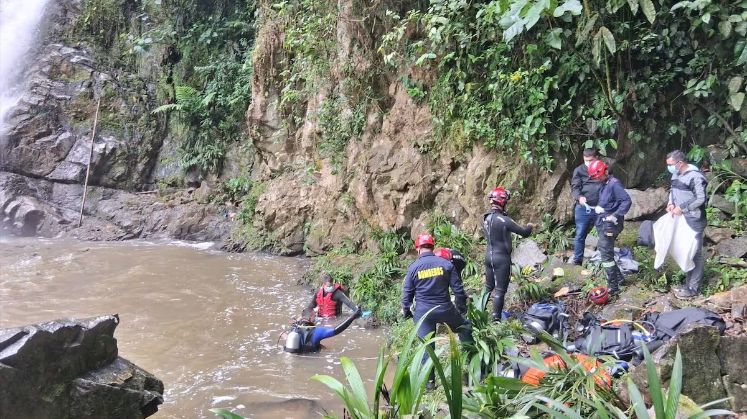 “Nuestro equipo de rescate especializado llegó al sitio sobre las 7:30 de la mañana de este lunes, a pesar de la lluvia. Se realizaron labores de reconocimiento y tres inmersiones de aproximadamente 45 minutos cada una, en el tercer buceo logramos encontrar el cuerpo del joven dentro del agua”, informó Portilla.