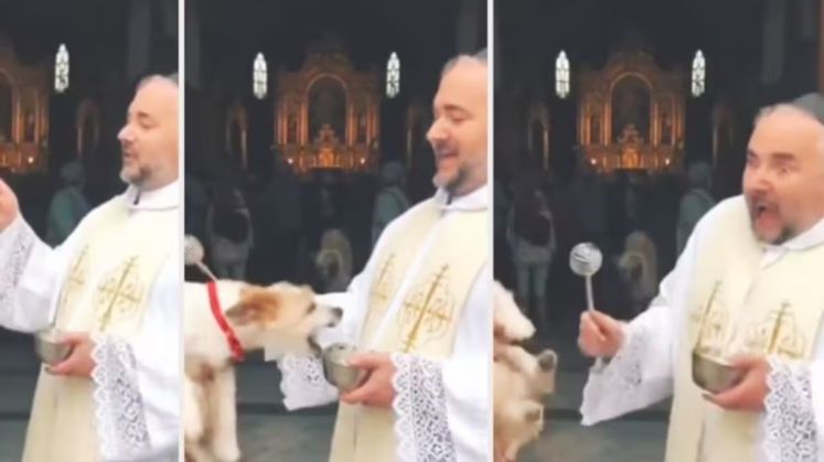 En el video se observa cómo el perrito se muestra aparentemente tranquilo mientras el religioso se acerca con los objetos de la bendición. Sin embargo, en cuestión de segundos, el animal cambia de actitud e intenta morder la mano del sacerdote, provocándole un fuerte susto y una reacción inmediata para evitar el ataque.